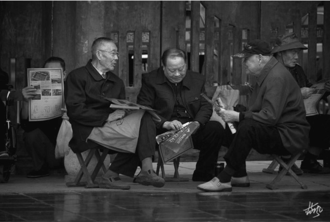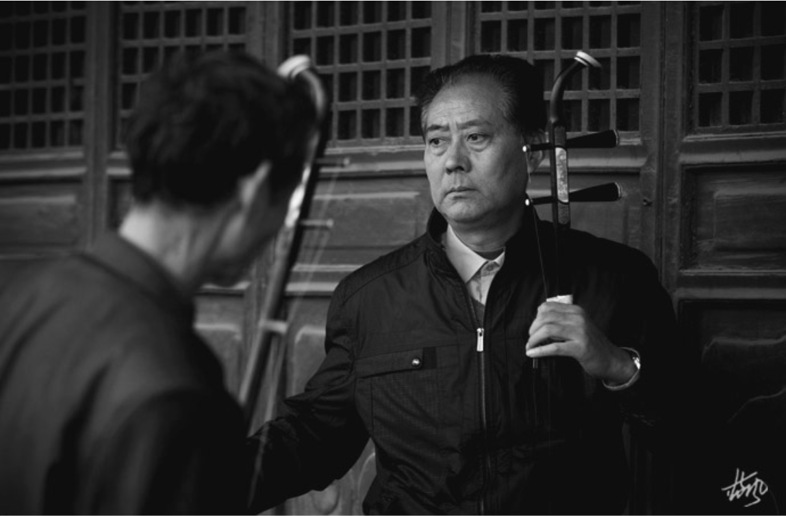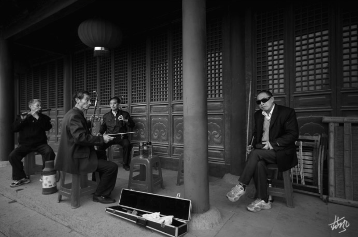 7 城门楼上的老人们悠闲的在这里吹拉弹唱。
