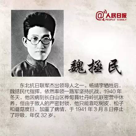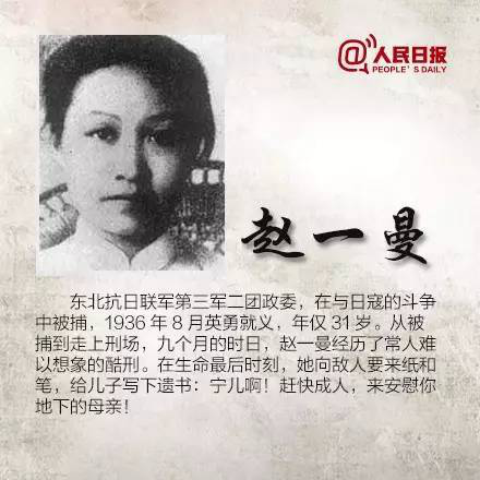 杨靖宇、赵尚志、赵一曼、八女投江……